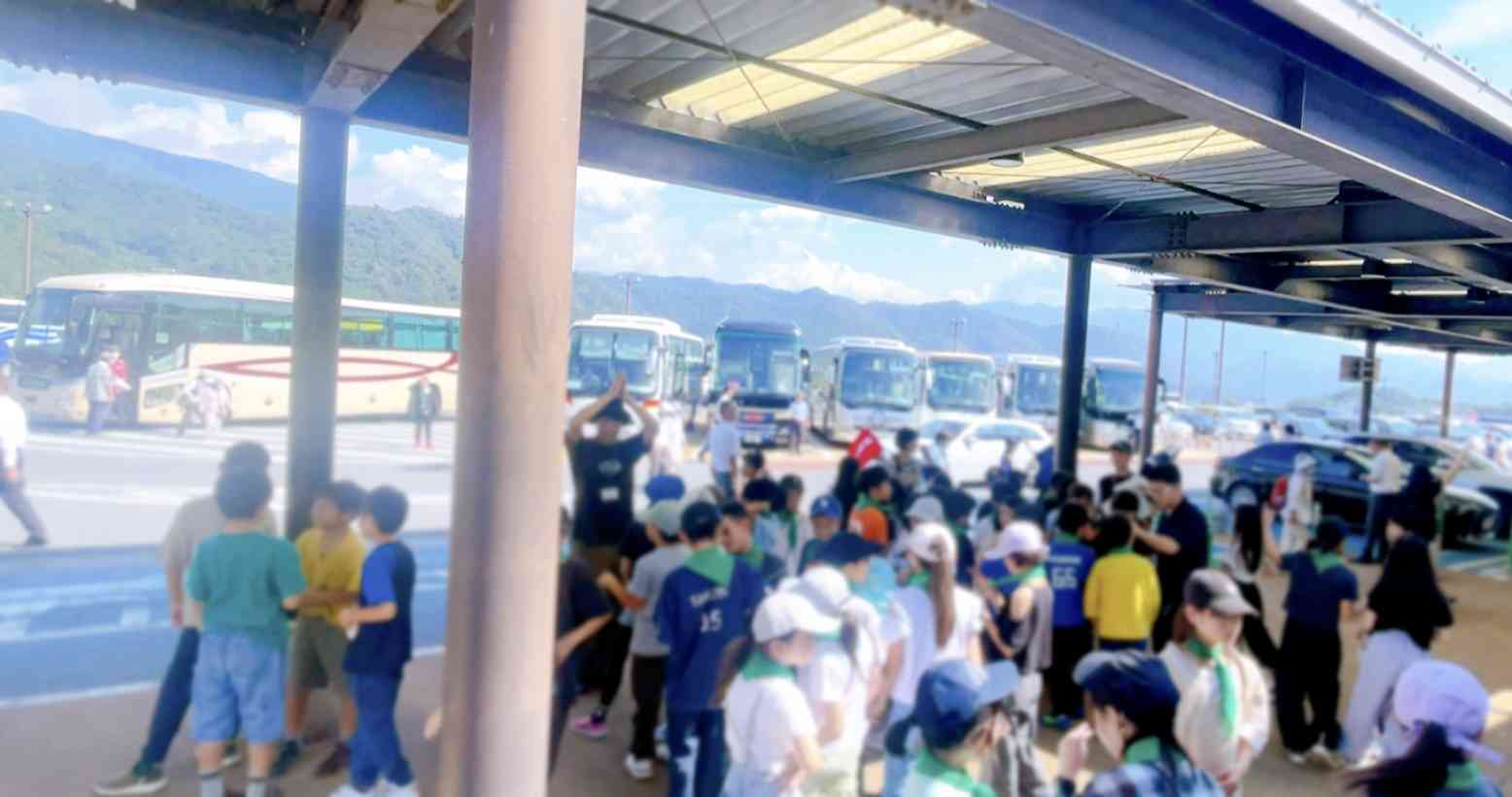 トイレ休憩のため、談合坂サービスエリアに到着しました。 車中ではレクを楽しみながら過ごしています♪ これから富士山を目指します!