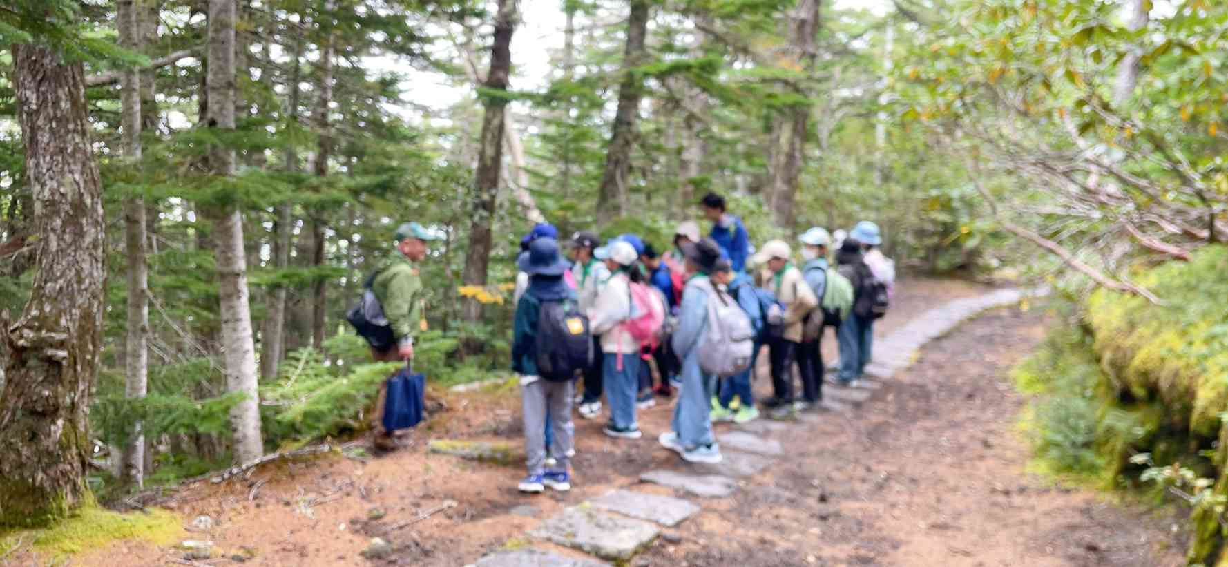 1日目のメインイベントのひとつである、富士山五合目ハイキング♪ ガイドさんと一緒に、富士山の大自然を感じながらハイキングを楽しみました!